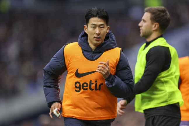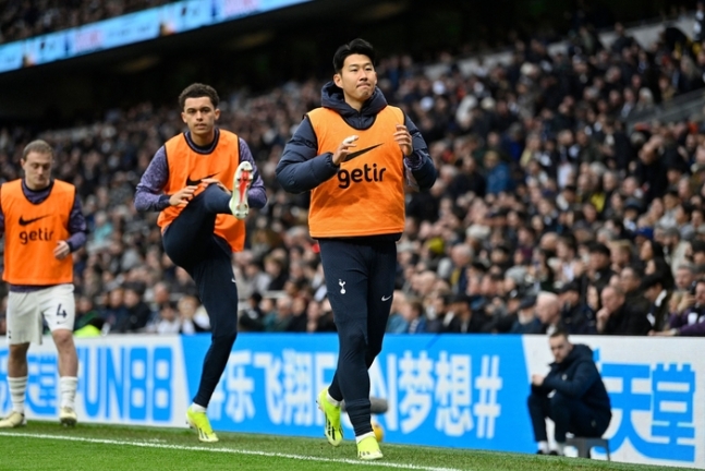 경기가 시작되자 손흥민의 표정은 매우 진지했습니다. 그는 그라운드에 있는 동료들을 집중해서 바라보며 몸을 일찌감치 풀기 시작했습니다.