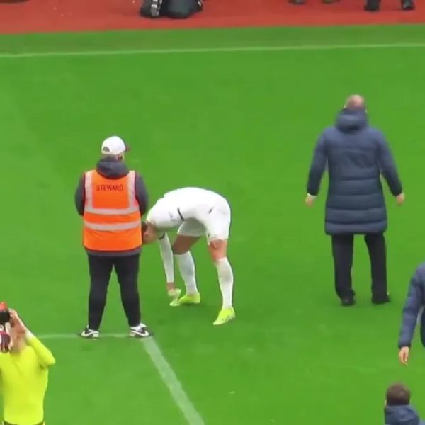 신성한 그라운드에 뒹굴고 있는 쓰레기. 그러나 손흥민은 그냥 지나치지 않았습니다. 그는 직접 손으로 쓰레기를 주웠습니다.
