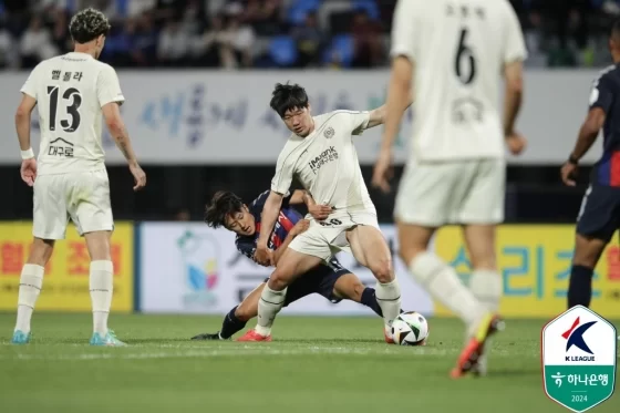 수원FC도 찬스를 만들었지만, 최규백과 권경원 선수의 슈팅은 각각 크로스바를 넘거나 골문을 벗어나며 득점으로 이어지지 않았습니다.