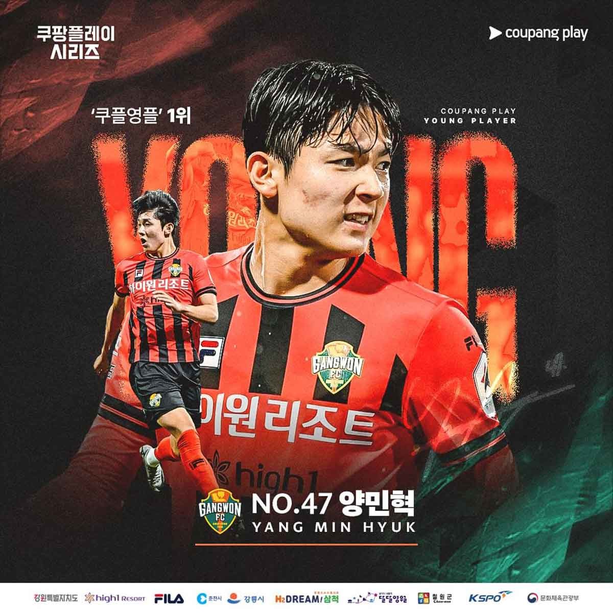 ‘쿠플영플’은 K리그1 소속 12개 구단에서 제출한 올 시즌 주목할 만한 활약을 보인 22세 이하(U22) 선수들 중에서 팬들의 투표를 통해 선정되는데, 양민혁 선수는 지난달 24일부터 30일까지 진행된 투표에서 최종 득표율 20.8%로 1위를 차지했습니다.