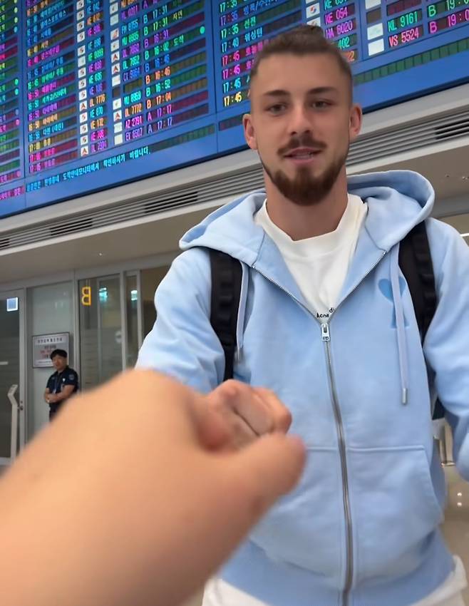유로 2024에 참가한 후 추가 휴가를 받은 라두 드라구신(22·토트넘 핫스퍼)이 대한민국에 입국했습니다.
