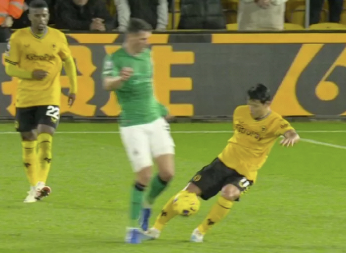 논란의 장면은 지난 29일 울버햄튼과 뉴캐슬 유나이티드의 PL 10라운드에서 발생했습니다. 전반 44분, 박스 안에서 볼을 잡은 황희찬이 위험지역에서 걷어내기 위해 킥 모션을 취했으나 파비안 셰어에게 걸렸고 비디오 판독(VAR) 끝에 페널티킥(PK)이 선언됐습니다.