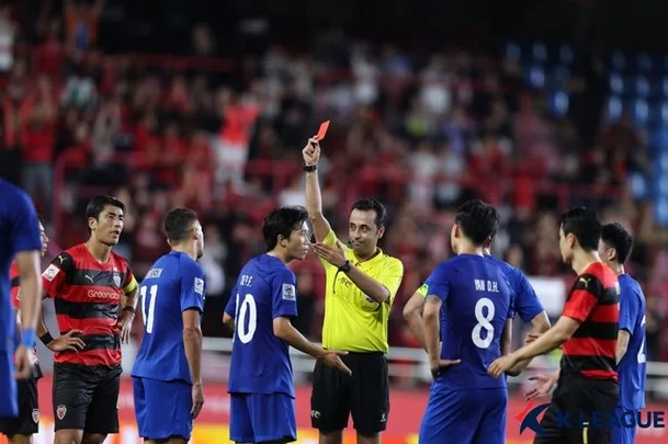 경기 중 불미스러운 사건이 터졌습니다. 후반 10분 우한 선수가 경고를 받았습니다. 그러자 약 1만명이 모인 우한서포터가 “멍청하다!”며 중국어로 주심을 욕했습니다.